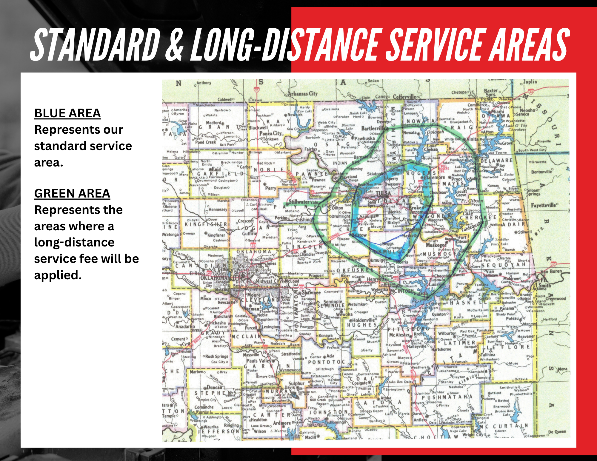We provide mobile battery and cable replacement within a 50-mile radius of Tulsa, including surrounding towns and job sites.